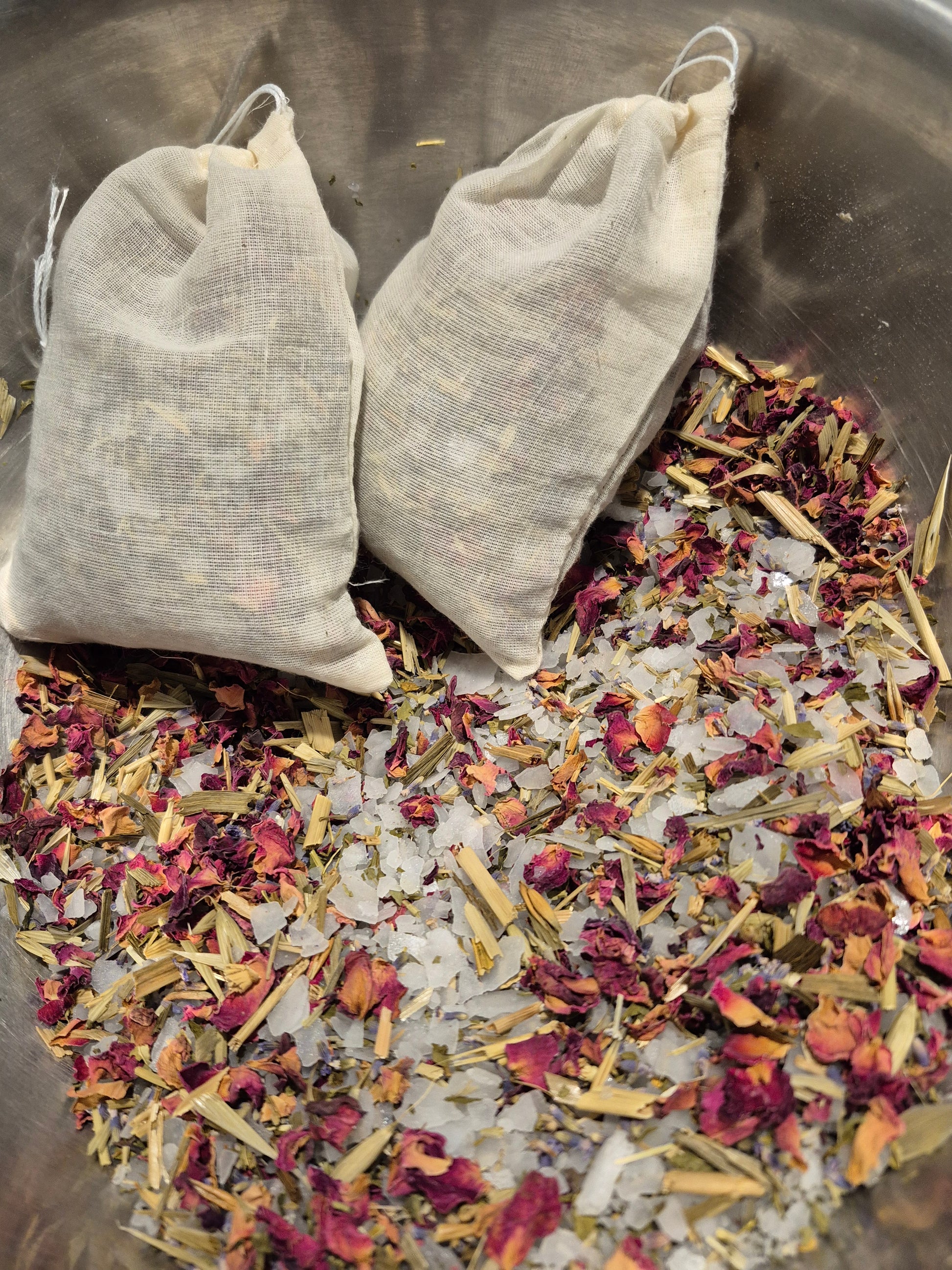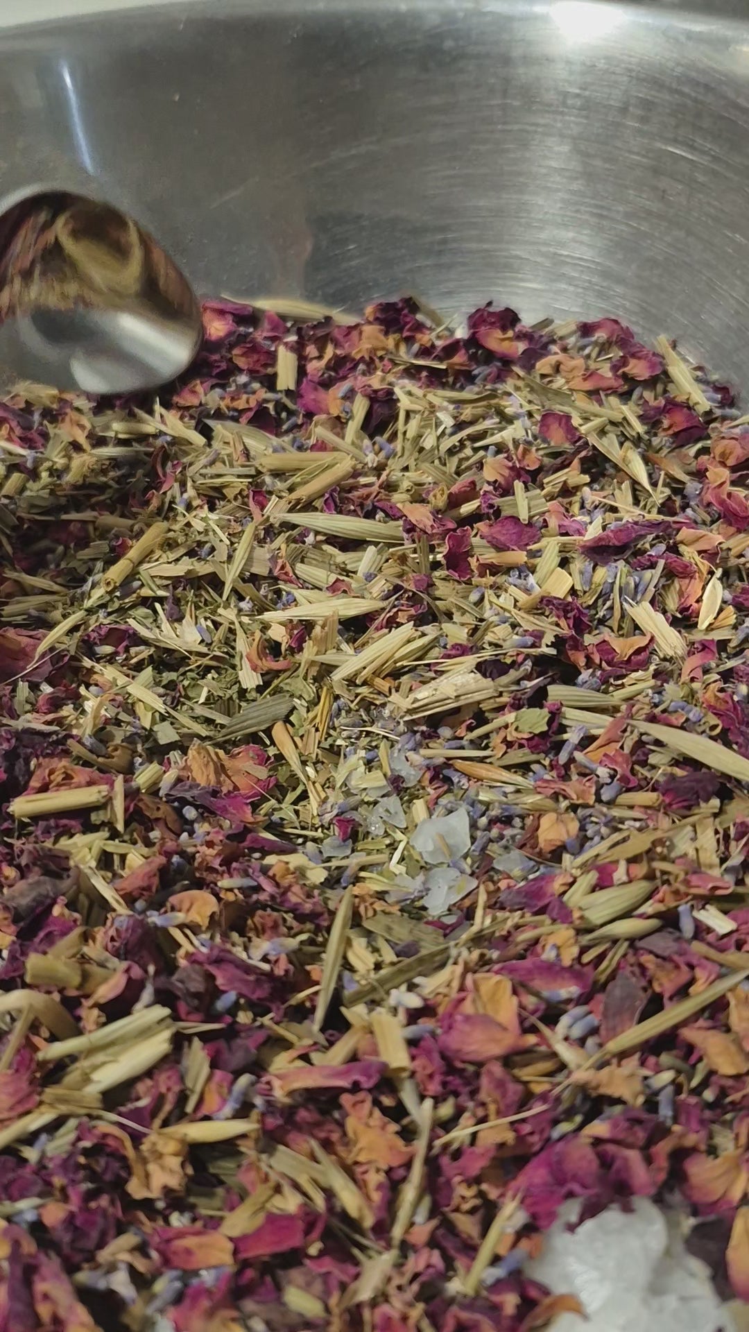 Enhance your bath with our expert blend of rose, lavender, skullcap, and green oats. By simply popping the bag in the bath as it fills, you'll reap the benefits of these natural ingredients. Soothe your skin, relax your mind, and indulge in a truly luxurious bath experience.